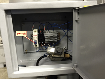 1) Turn off the power of the garnet feeding system using the switch in the electric box like shown below.